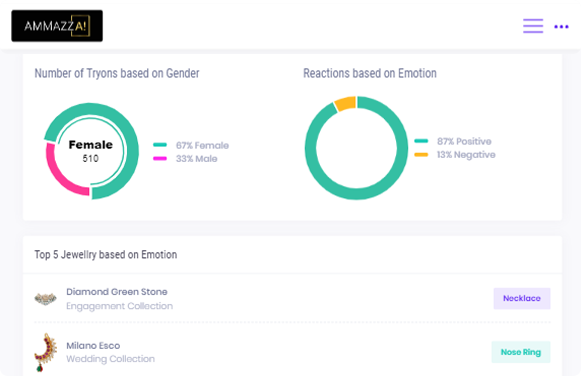 "AMMAZZA" an out-of-box multi-utility product in the market of jewellery with the fusion of AR (Augmented Reality) + AI (Artificial Intelligence) + BI (Business Intelligence) allows users to instantly share the Try-On image, provides Analytical Dashboard Reports. Furthermore, there is Real Time Comparison feature which offers users to try and compare the jewellery of their choices.